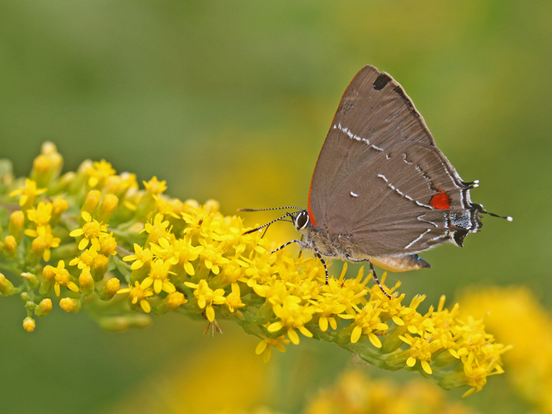 With August behind us, the season of butterflies is slowly slipping away. Swallowtails become scarce, and skippers, once filling every flower in the field, have all but disappeared for the year. However, a keen observer may be able to find late-season fliers enjoying the goldenrod and asters. One might find Variegated Fritillaries, Common Buckeyes, Gray Hairstreaks, or maybe a White M Hairstreak, like the one I encountered today.